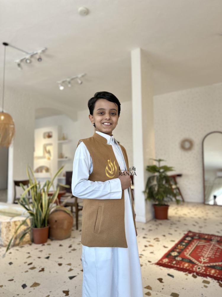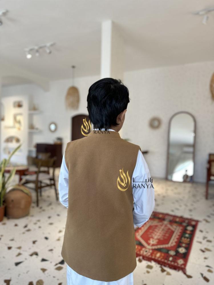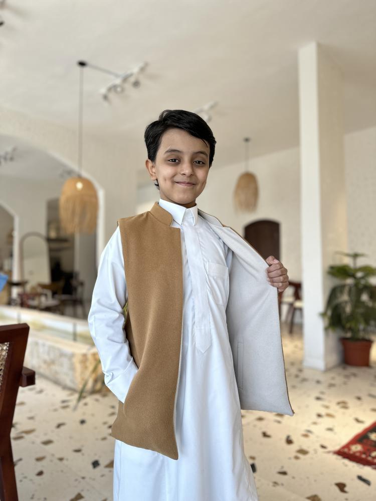 فخم طلة للاطفال قطعة مميزة من ملابس شتوية فاخرة مع سديري جوخ فاخر بصناعة يدوية جودة عالية وبتصميم مميز وأنيق مع إمكانية لبسه على الجهتين حيث تستفيد منه بلونين مختلفين مع جيوب جانبية كما موضح فالصورة وهو لجميع الاعمار والمناسبات