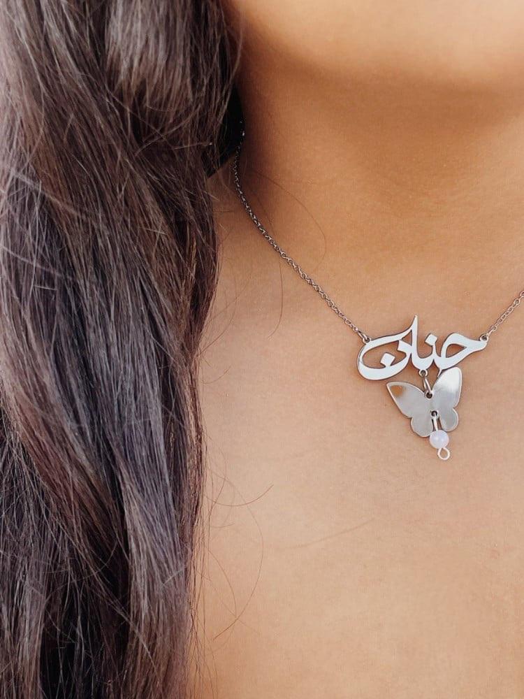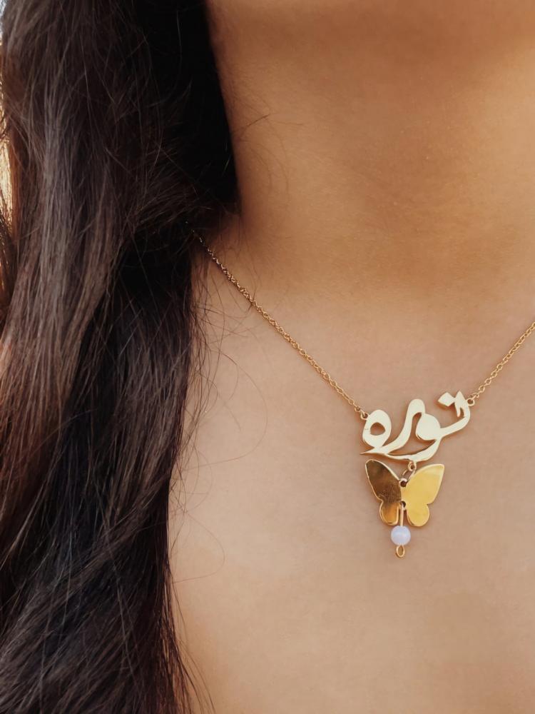 سلسال بالاسم مع اضافة فراشة لتزيد من السلسال جمالاً أهدى بالاسم.
