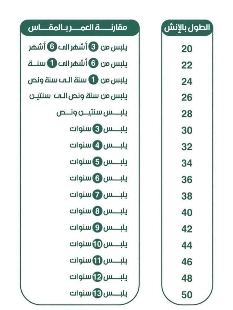 متوفر المقاسات حسب العمر من 6 أشهر إلى 12 سنه