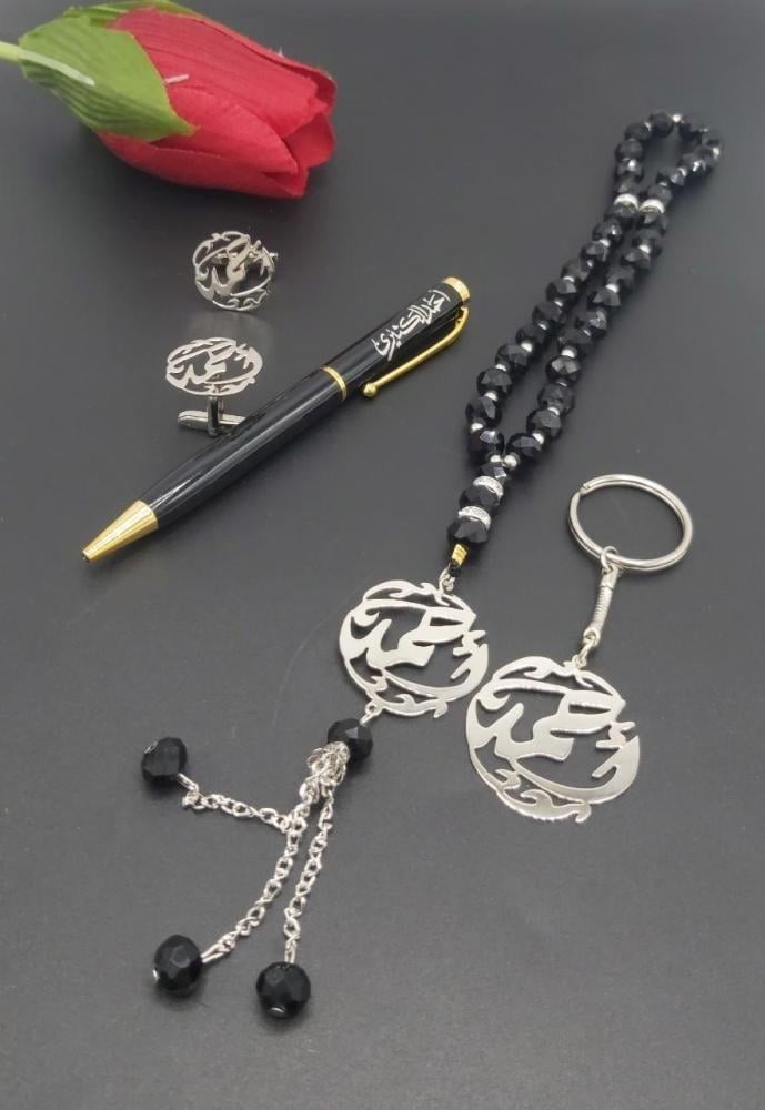 طقم رجالي مميز (قلم-سبحة-كبك-ميدالية) تم تصميمه بجودة عالية وعناية فائقة عن طريق صائغين مهرة الصنع